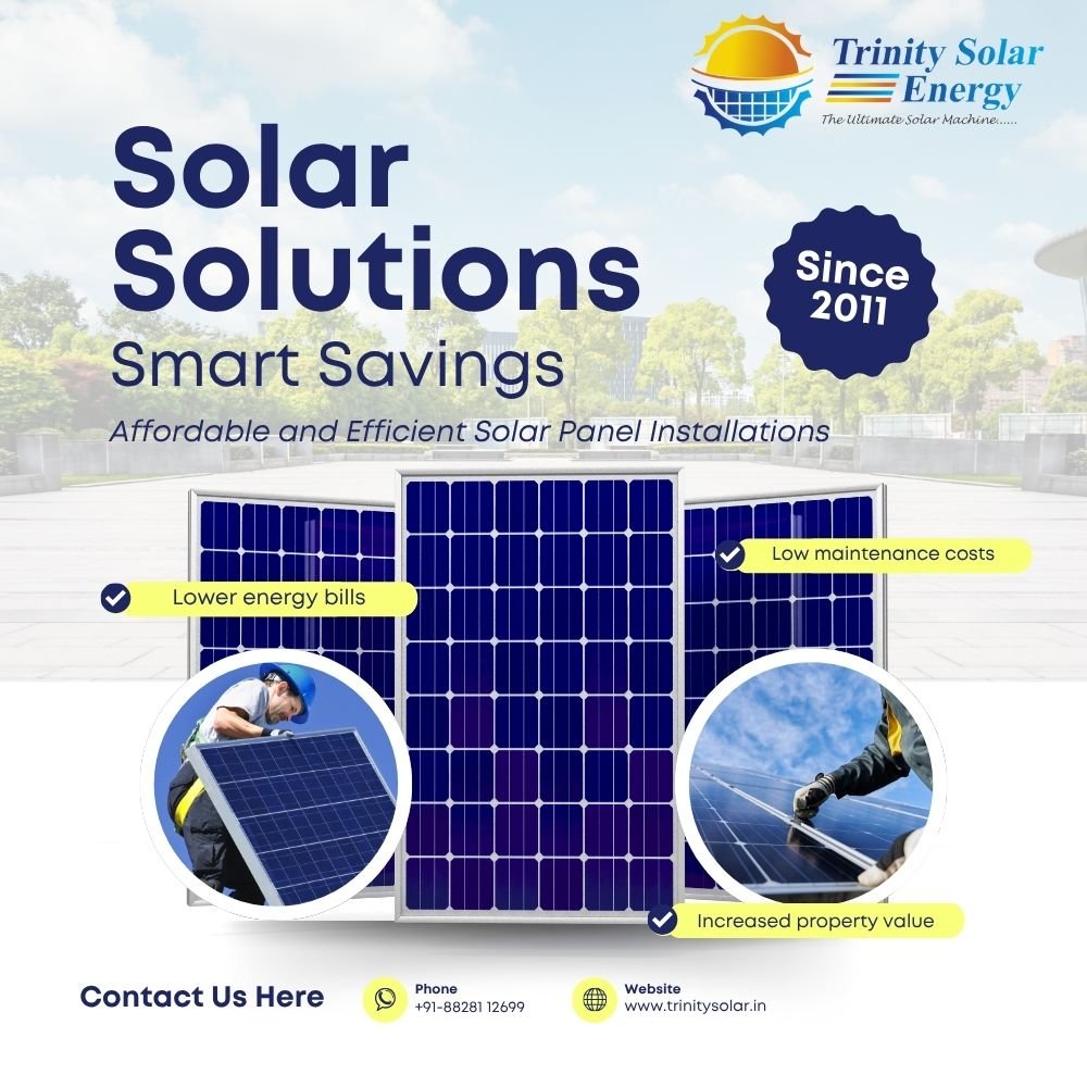 Enjoy affordable solar energy for your home or business with Trinity Solar. Flexible EMI, hassle-free installation, and real-time monitoring – all at your fingertips.